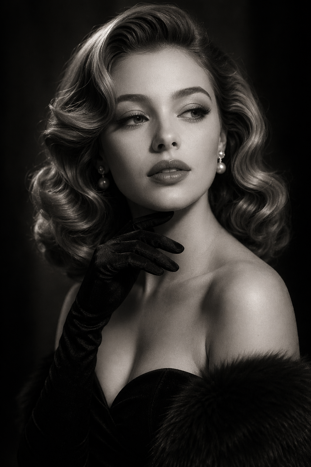 Best for timeless black-and-white portraits, soft glamour lighting, pearl-and-satin styling, and classic magazine elegance.